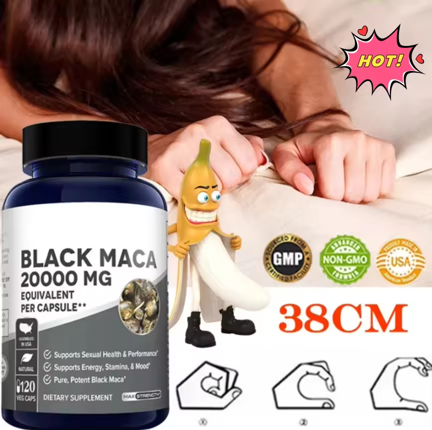 Etiketli Maca kök kapsülleri siyah kırmızı sarı Maca kök takviyeleri